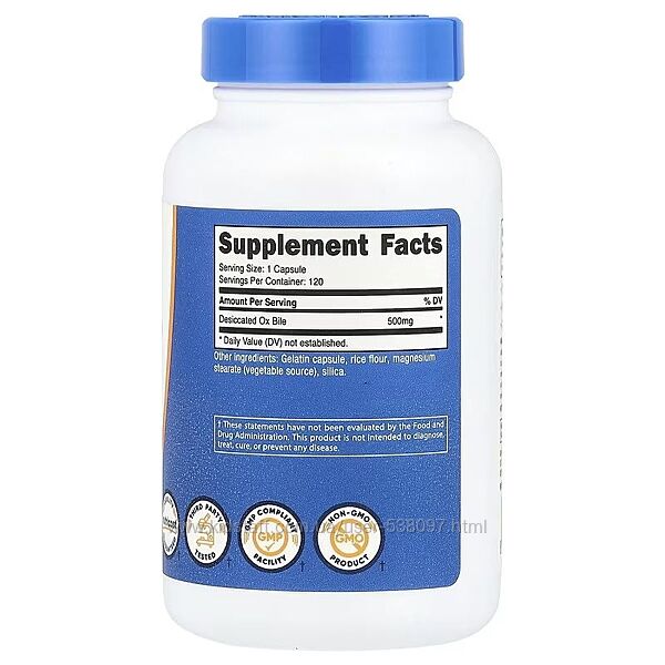 Подробное описание: Nutricost Бычья желчь. 500 мг, 120 капсул