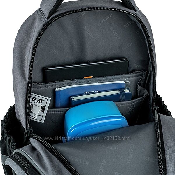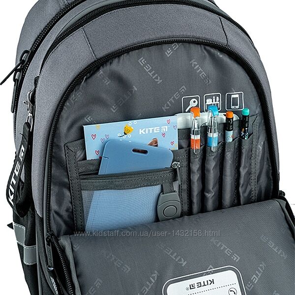 Система організації простору у рюкзаку з кишенями, роздільниками та органайзером допомагає тримати канцелярію в порядку. Виріб виготовлений із високоякісних матеріалів європейського виробництва.