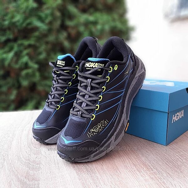 Подробное описание: Зимові чоловічі кросівки термо Hoka Mafate Speed 2 чорні з синім