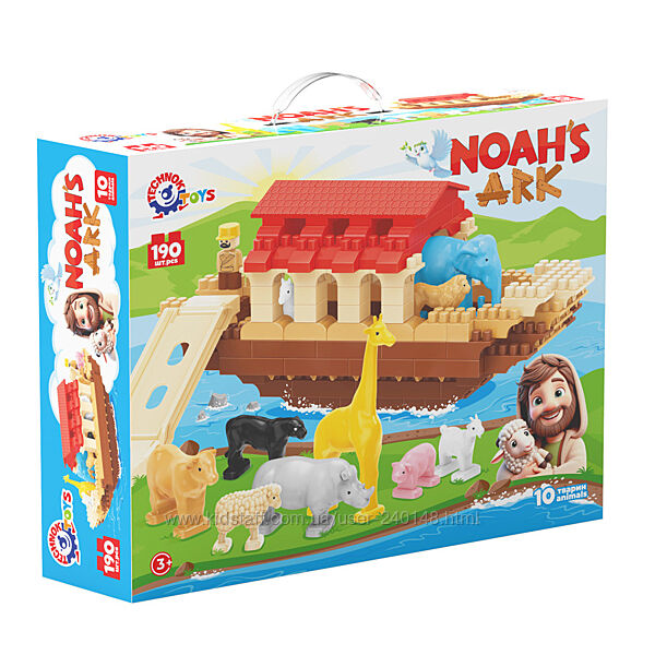 Подробное описание: Конструктор Технок 1348 Ноїв ковчег 190дет. , 10 фігурок тварин та 1 фігу