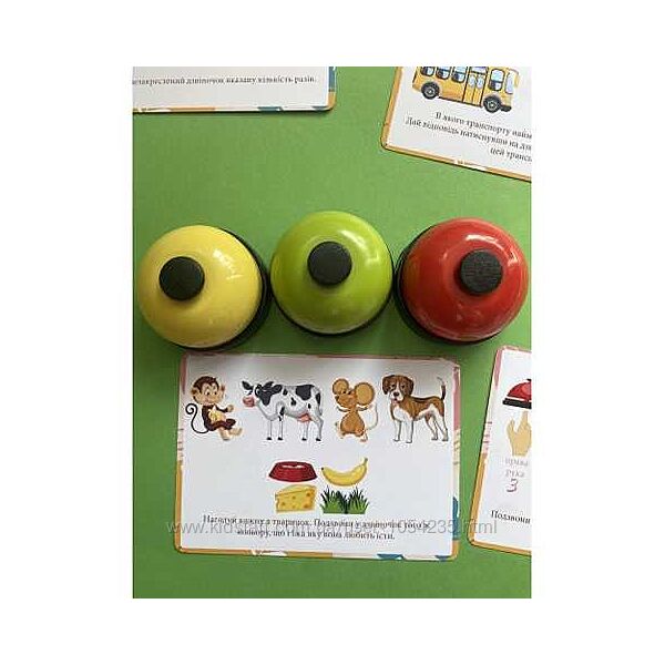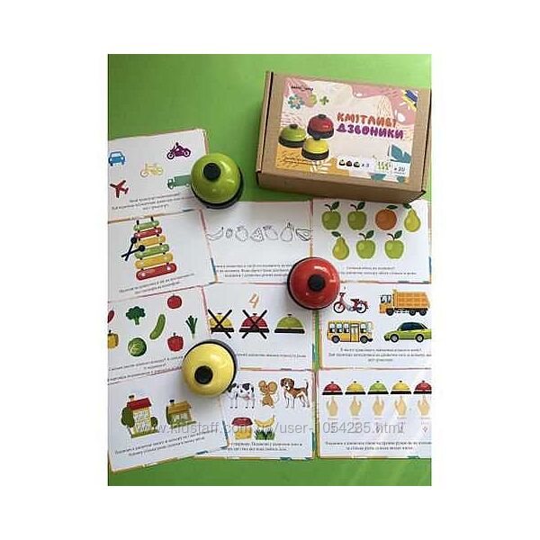 Продам интересные развивающие наборы "Шустрые звоночки", "Умные звоночки".1. Развивающий набор "Шустрые звоночки". 20 неймоверно интересных и полезных заданий. Игра нейропсихологическая - ребенок максимально задействует внимание. Набор развивает: ориентирование в пространстве, цвета, лево/право, формы, транспорт, животные, кто, что ест, посчитай, последовательности, контуры. И это одновременно с тем, что ребенок должен дать правильный ответ, нажав на звоночек. Возрастная категория 3+. Цена: 450 грн.