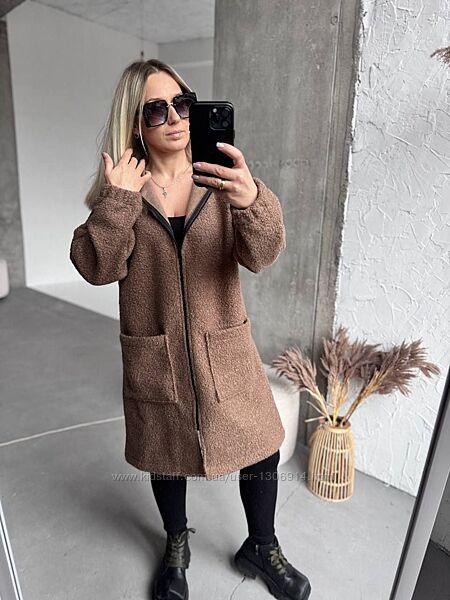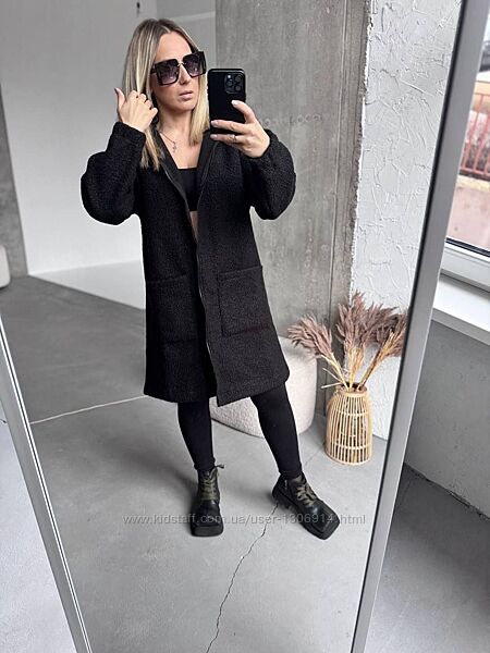 Мега стильний кардиган з капюшоном у трендовому кольорі.Застібається на блискавку .Довжина міді .Без підклада