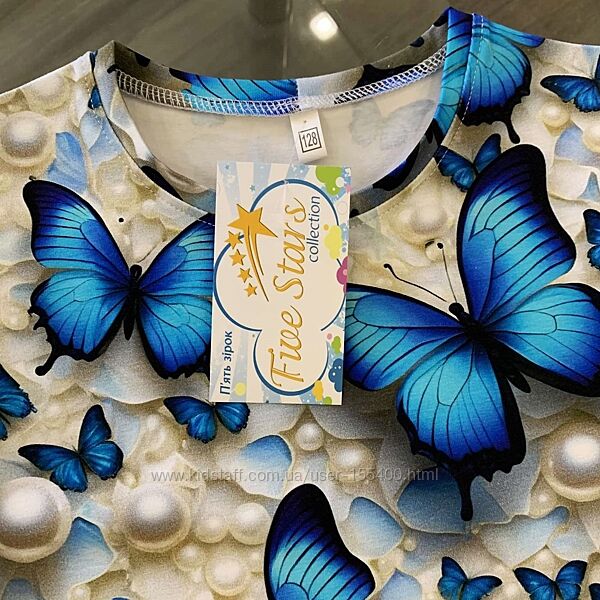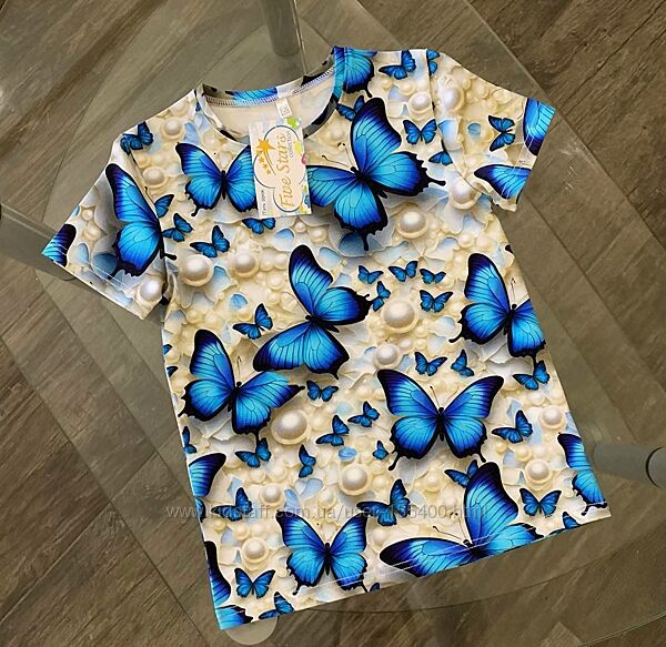 Подробное описание: Дитяча футболка голубі метелики в перлах Five Stars 98р-164р