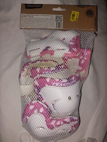 Зручна фіксація за допомогою поясів-липучок дає змогу їх швидко одягати та знімати Конструкція елементів захисту має здатність змінювати свою форму під час руху суглобів, завдяки чому забезпечує природність руху та комфорт під час катання на роликових ковзанах, стандартний захист під час падінь Розміри (обхват в см): Коліна: 30-33/28-31 Лікті: 25-28/22-25 Зап´ястя: 17-19 Купляли на сайті Розетка Tempish — широковідомий у Європі чеський бренд спортивних товарів. Основні напрями бренда — це інлайнові роликові ковзани й аксесуари, льодові ковзани та хокейна амуніція, скейтборди.