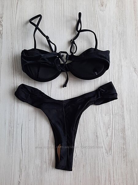 купальник бандо уплотненная чашка на косточках чашки-половинки, сзади на завязке объем регулируется, плавки бразилианы с высоким вырезом на ногу