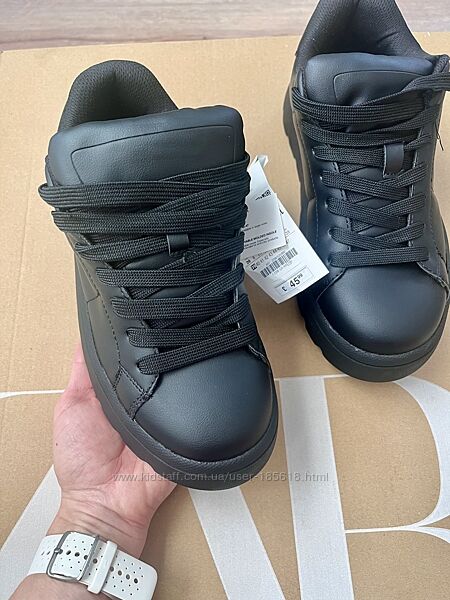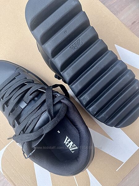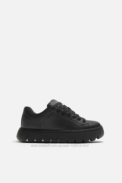 Однотонні чорні кросівки Zara на шнурівці.Стильна модель на товстій підошві (4 см) з великим язичком.