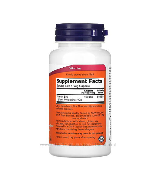 # NOW Foods, Вітамін B6, 100 мг, 100 рослинних капсулОПИС:
