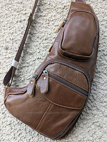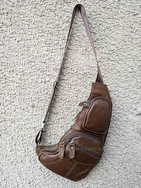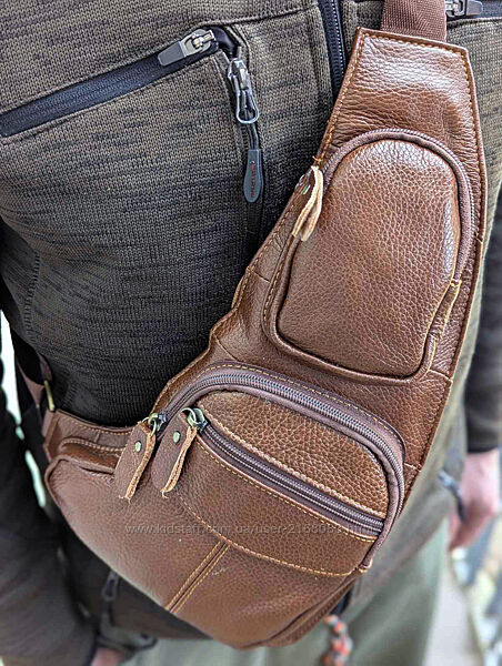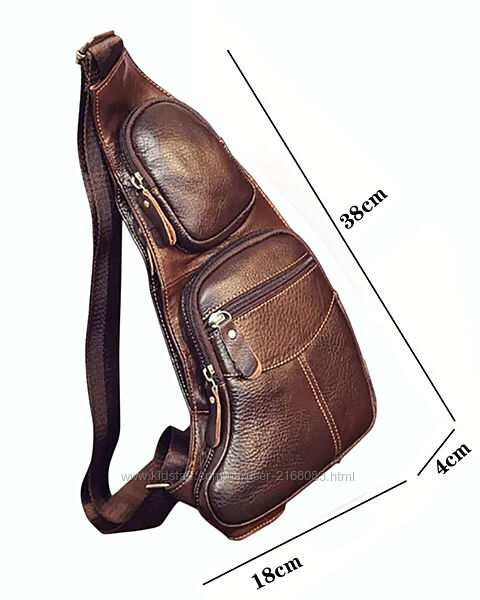 Шкіряна чоловіча сумка нагрудний рюкзак слінг сідло месенджер кроссбоді унісекс 38х18х4Стильна сумка із натуральної шкіри, фабричний Китай