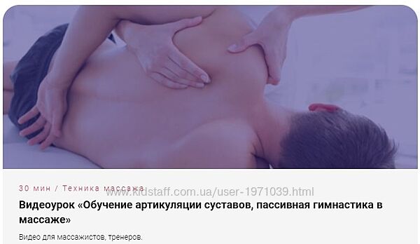 Артикуляции суставов или пассивная гимнастика в массаже (Антон Епифанов) План видеоурока: Массаж суставов (алгоритм массажа, акценты, скорость движений)Методика артикуляция (мобилизация до нормального состояния) (компрессия и тракция), виды движений, приемы фиксации частей тела, пробы.Что может сделать тренер обычный массажист, не владеющий трастовыми методиками, чтобы помочь суставам.Разбор на примерах суставов (с чем связана боль, причины, исключая серьезные травмы).Методики классического массажа суставов и артикуляции на практике.Приемы работы для эффективности массажа и снижения нагрузки на массажиста.