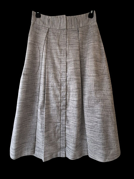 Трендова міді спідниця кльош с великими кишенями на підкладці
