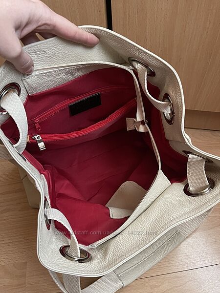 Подробное описание: Вместительная кожаная светло бежевая сумка Made in Italy