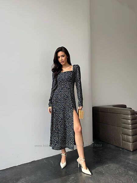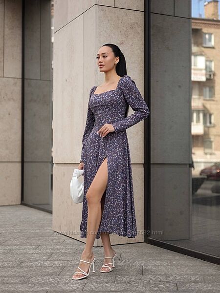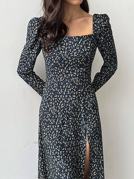 Подробное описание: Жіноча сукня бавовняна міді з довгим рукавом з розрізом на нозі літня