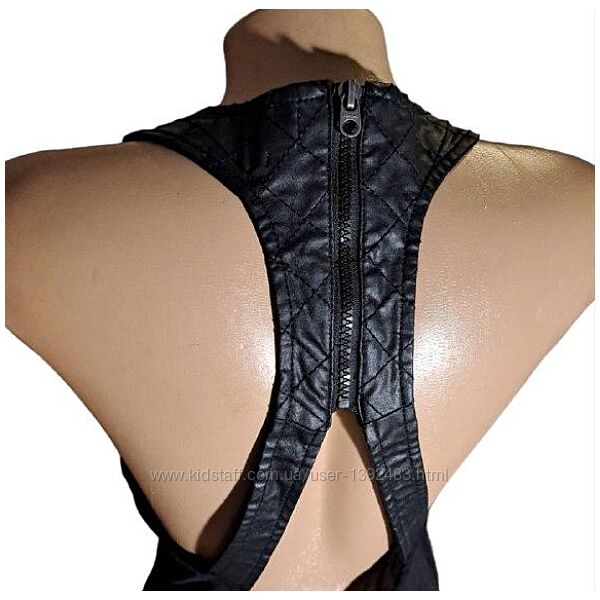 Чорне пряме трикотажне плаття, без рукавів, зі шкіряними вставками, простроченими ромбами на спині та плечах, тм Replay, розмір вказаний small, але насправді L або XL орієнтуйтеся за вимірами. Манекен М. Як новенький, дефектів немає. Не секонд, особисті речі.Заміри по тканині: