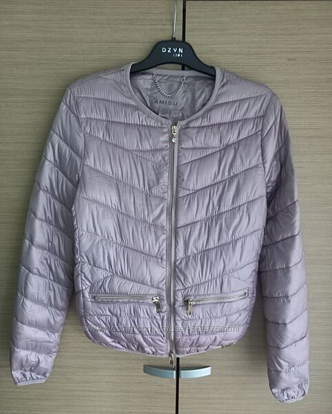 Дуже гарна і якісна куртка Amisu р.XS. Колір ніжно рожевий. Утеплювач тонкий синтепон.Защипається на змійку, є 2 кишені. По низу резинка, рукава теж на резинці.