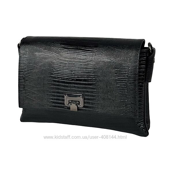 Сумка жіноча шкіряна лакована Karya 5073-073 чорна✔️ Матеріал: натуральна шкіра під рептилію.