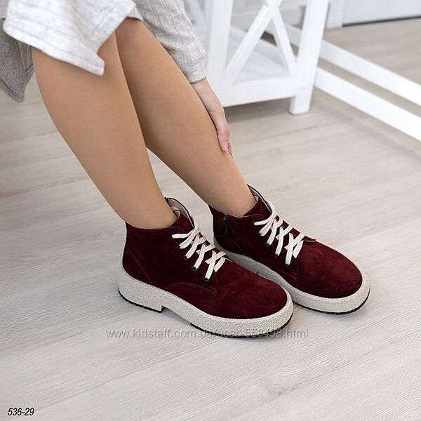 Подробное описание: Замшеві жіночі черевики з бежевою підошвою колір бургунді