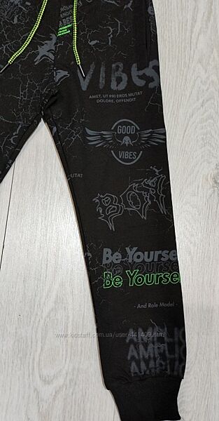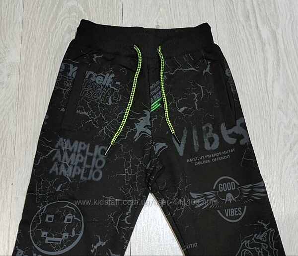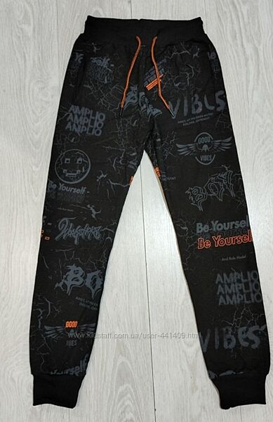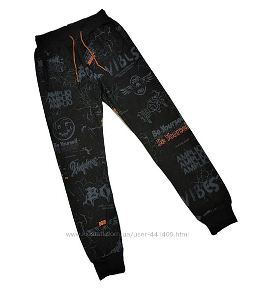 Спортивні брюки двонитка для хлопчиків відмінної якості. Дуже стильні та красиві. Дуже оригінальний та якісний принт. Якість тканини дуже гарна. Тканина дуже незвичайна, що надає їм особливого вигляду і Ваша дитина приверне захоплені погляди перехожих. Прекрасно поєднуються з будь-якими регланами та толстовками.134: довжина 75 см, кроковий шов 52 см, напівобхват талії 26 см, напівобхват стегон 39 см140: довжина 81 см, кроковий шов 57 см, напівобхват талії 28 см, напівобхват стегон 41 см146: довжина 88 см, кроковий шов 62 см, напівобхват талії 30 см, напівобхват стегон 43 см