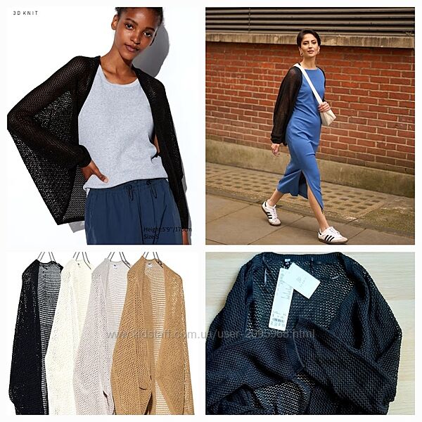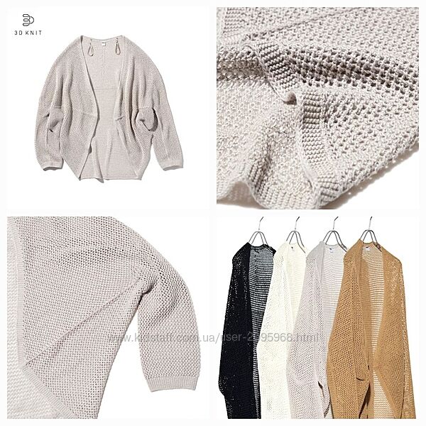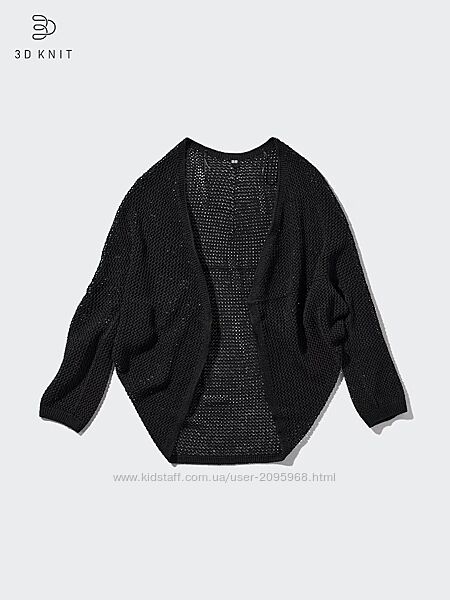 Новий,можна на подарунок,з етикетками. Uniqlo кардиган з льону та Lyocell . фірмовий стиль Uniqlo – простота та комфорт. Це якісна річ . Гарно драпірує фігуру. Цей кардиган добре поєднується з сукнями(спідницями) чи джинсами. Кардиган чорний Uniqlo трикотажний сітчастий Тривимірна в´язка : мінімалістична та красива 3D Knit Uniqlo- це японська технологія в’язання цілого одягу з однієї нитки. Перевага використання цього методу в’язання полягає в тому, що одяг є надзвичайно зручним та відмінно сідає по фігурі. Розмір S(підійде чудово на М) Довжина(спинка)-71 см Підійде на груди 84-94 см Колір-чорний Прозорий сітчастий дизайн. Безшовна конструкція «3D Knit». - М´який сітчастий трикотаж з елегантною текстурою та драпіруванням. Оскільки форма одягу може змінитися, якщо її повісити на вішалку, ми рекомендуємо сушити її в плоскій формі після прання та складати під час зберігання. - Рукава Dolman демонструють техніку «3D Knit». - Безшовна трикотажна конструкція. 58% акрил, 26% Lyocell , 16% льон Відправляю тільки Новою поштою При купівлі двох речей безкоштовно відправлю новою поштою! Є післяплата (накладений платіж) Новою поштою(на карту 150 грн) Повернення і обміну немає! Купуйте зважено і відповідально,звертайте увагу на заміри вказані в оголошенні!
