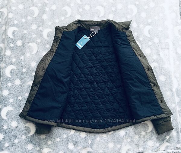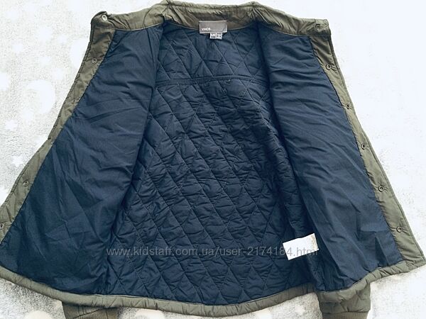 12-14 р. Pepperts, модель Vince брендова стьобана демі куртка на тонкому синтепоні, колір хакі. Застібка -кнопки, зверху м"яка плащівка- вітронепродувний матеріал. всередині cotton!дві кишені. нова з бірками довжина 55; пог 49; рукав від вороту 69