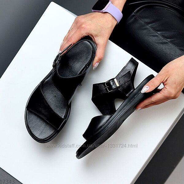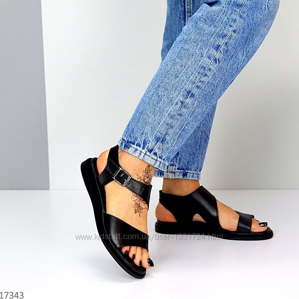 Подробное описание: Босоножки черные кожаные на плоской подошве