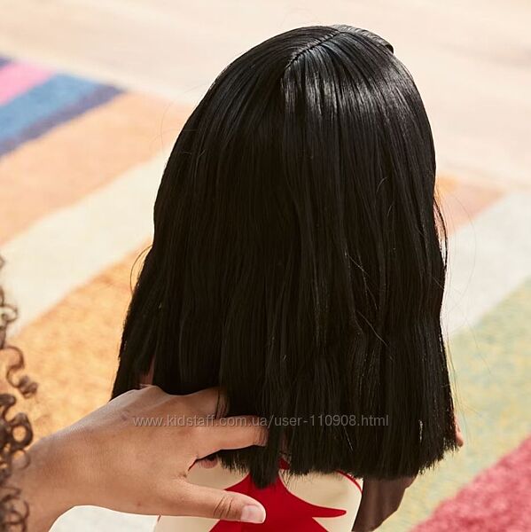 - Длинные черные волосы, челка