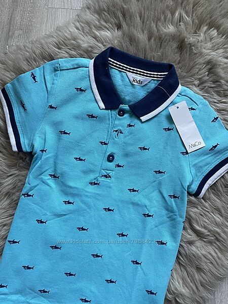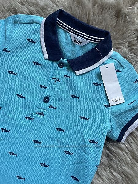 Подробное описание: Детская футболка поло на мальчика M&Co с акулами