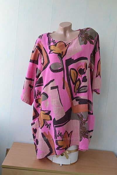 Легка подовжена блуза, туніка з кишенями в стилі бохо Made in Italy, Італія зі 100% бавовни. Річ дуже легка, чудово пропускає повітря,приємна до тіла, і дуже зручна. Підійде під будь-який низ, довжина