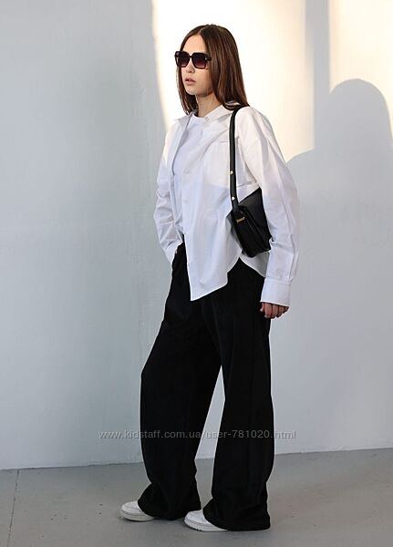 Завдяки м’якій текстурі тканини штани виглядають благородно та дорого, а широкі штанини додають легкості рухам. Склад тканини - 50% поліестер, 45% віскоза, 5% еластан. Висока талія на резинці забезпечує комфортну посадку та підкреслює силует.Бічні кішені роблять модель стильною і практичною. Лаконічний дизайн дозволяє легко поєднувати їх із базовими футболками, оверсайз сорочками чи світшотами, створюючи гармонійні аутфіти для навчання, прогулянок або модних street-style луків.