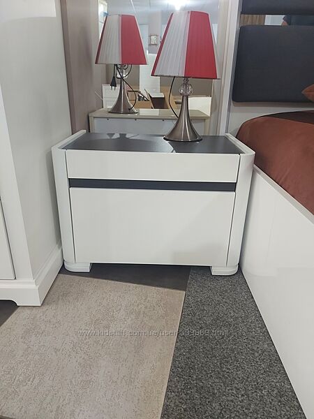 Кровать безподьемного механизма. 160х200 по спальному месту. Мягкое изголовье. Сочетание белого крашеного мдф и серого дсп egger. К ней есть комод и тумба. Без ручек, открывается нажатием.
