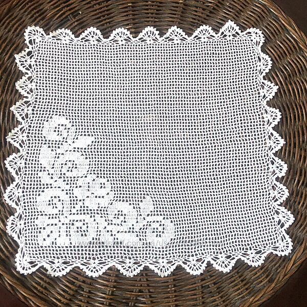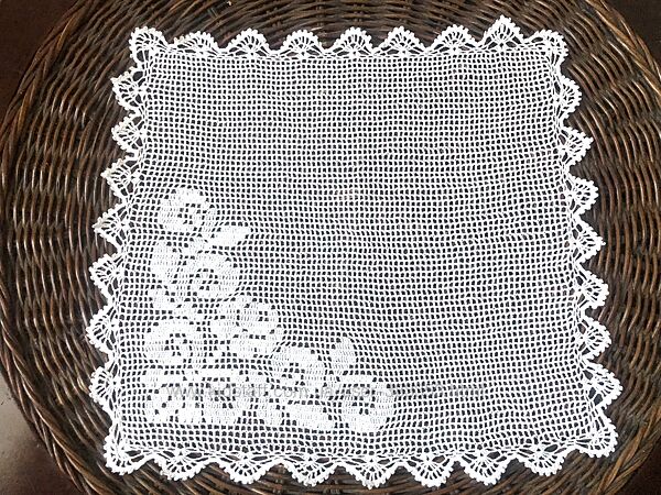Хлопковая салфетка филейного кружева крючком — розочка Размер 33х35 см Для творческих проектов и декора столешницы Для ценителей ручной работыДругие объявления продавца
