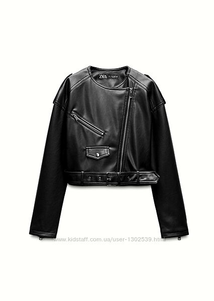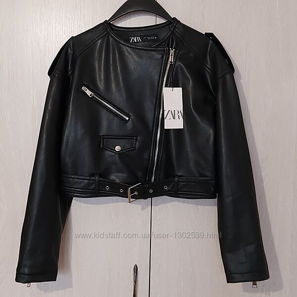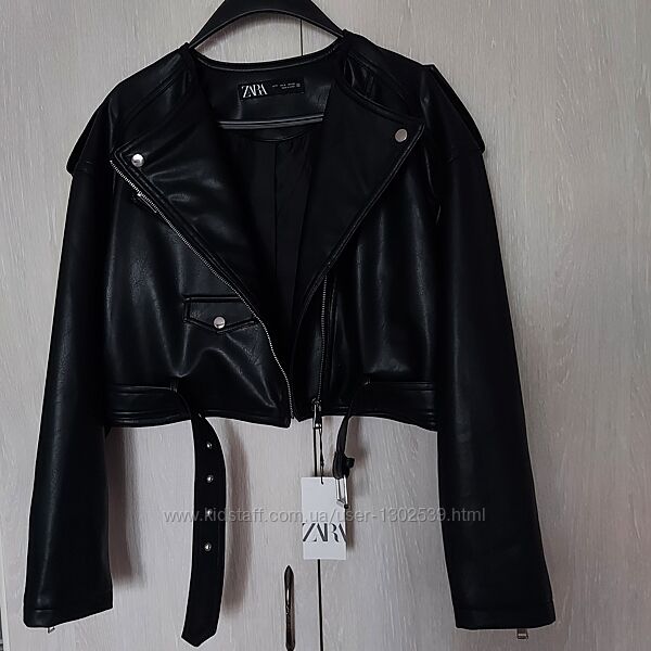Топова укорочена жіноча куртка косуха із екошкіри в байкерському стилі Zara, оригіналНова колекція!