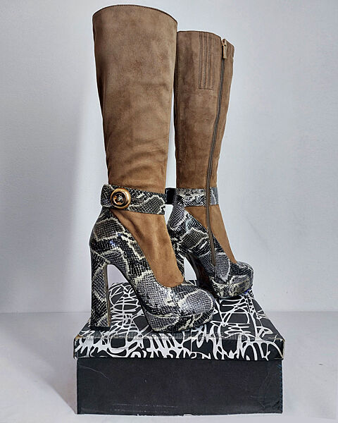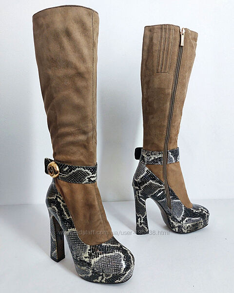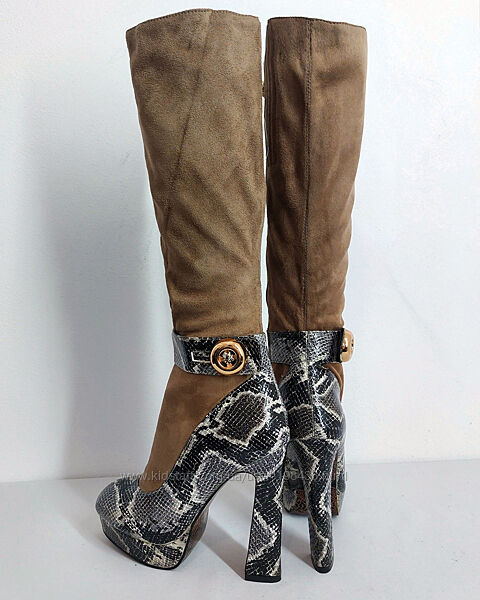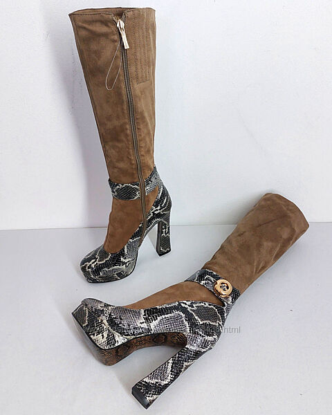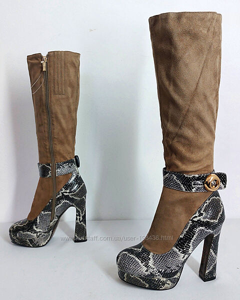 Стильні чоботи бренду SP LION.Модель з каблуком і танкеткою