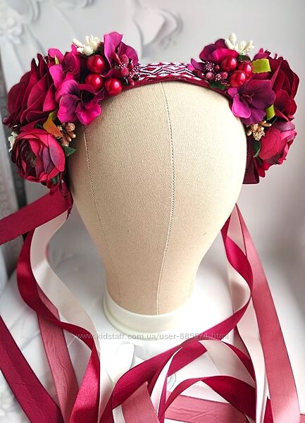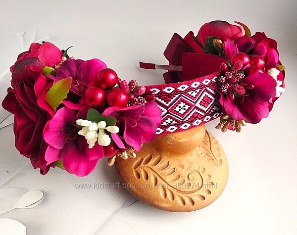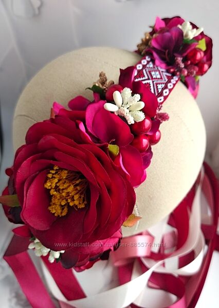 Подробное описание: Чільце українське, бордово-малиноно-червоне