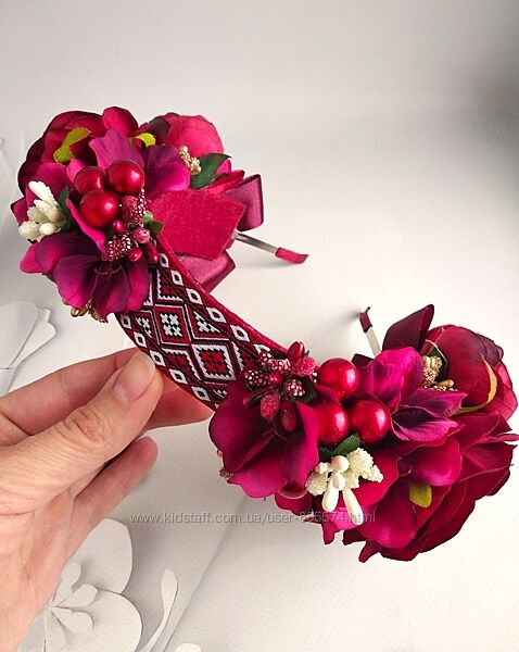 Можна виконати більш бордового або більш червоного кольору, коригувати відстань між квітами в залежності від віку дівчинки або від Ваших уподобань.