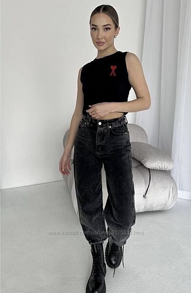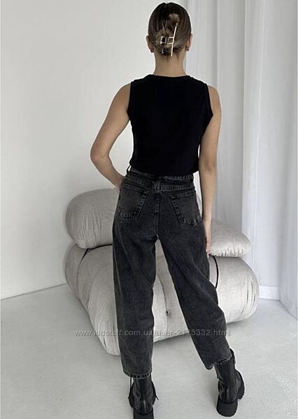 Трикотажний базовий топ з широкими бретелями, круглим коміром, без рукавів. Якісна, приємна тканина; актуальний, якісний накат.
