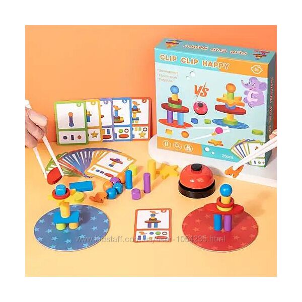 3. Настольная игра "Тотем Зен". Каждый игрок вытаскивает карточку, где изображен тотем. Суть игры в том, чтобы быстрее других участников собрать фигуру, изображенную на карточке. Ни один из элементов не должен упасть, иначе игрок выбывает. Для переноса элементов игры используются деревянные палочки, что прибавляет дополнительной сложности. Кто первым собрал фигуру, должен крикнуть "Тотем Зен" и позвонить в звоночек. Комплектация: 30 разноцветных деталей разной формы, 2 набора палочек для игры, 2 игровые основы (подставки), звоночек, 25 карточек с заданиями. Возрастная категория 3+. Цена: 500 грн.
