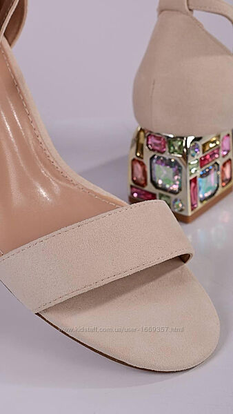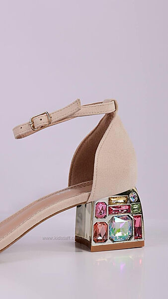 Добавьте элегантности и стиля в свой образ с нашими женскими бежевыми замшевыми босоножками на каблуке. Эти модные босоножки идеально сочетают в себе комфорт и изысканность, делая их незаменимым элементом вашего гардероба. Стильные женские босоножки из искусственной замши – идеальный выбор для любого образа. Бежевый цвет придает элегантность, а устойчивый каблук высотой 5,5 см, украшенный цветными камнями, добавляет изысканности. Модель с закрытой пяткой надежно фиксируется на ноге благодаря тонкому ремешку с пряжкой. Отличный вариант для особых случаев, вечеринок или повседневной носки.