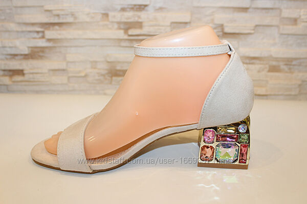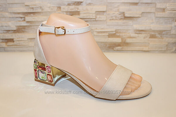 Подробное описание: Босоножки женские бежевые замшевые на каблуке Б1664