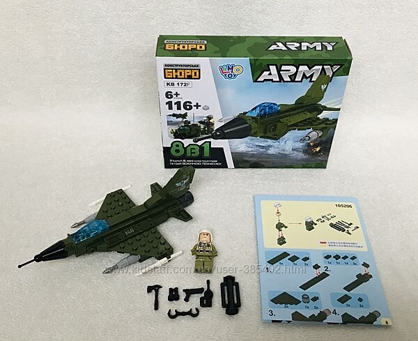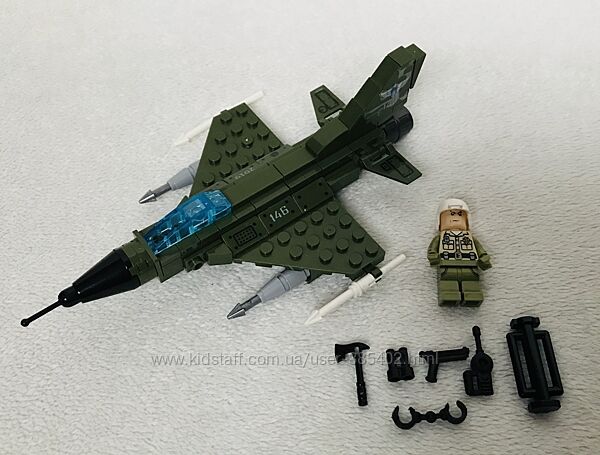 В комплекті: всі деталі, фігурка пілота, інструкція, коробка.