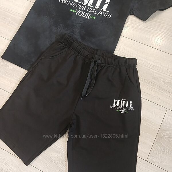р.152. Футболка: довжина - 60, обхват - 88, плечі-39 Шорти: довжина - 47, стегна - 96, пояс - 66