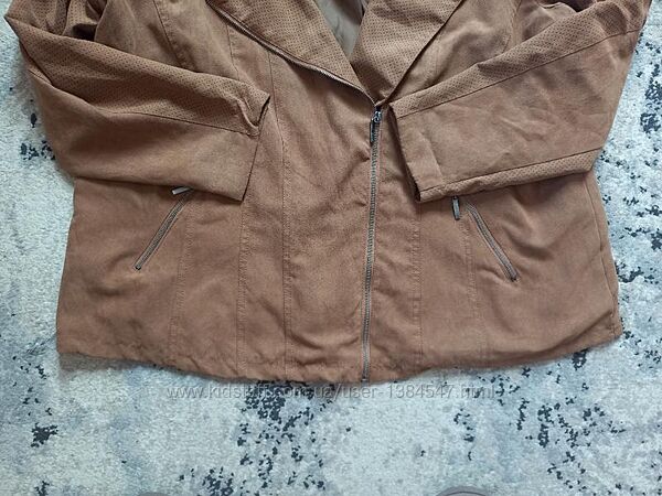 Брендовая большая ботал замшевая куртка косуха пиджак Janina, 20-22 размер.