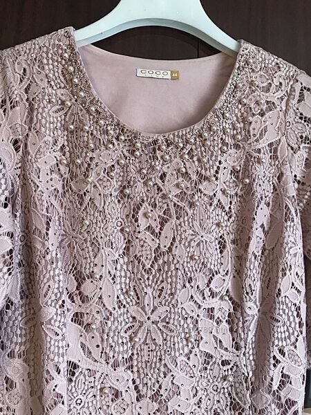 ПРОДАМ ПЛАТЬЕ НАРЯДНОЕ турецкие кружева, размер европейский 44,наш размер 48-50, коралловый цвет, ,трикотаж чуть стрейч, на подкладке с блёстками и бусинками впереди, сбокузмейка, обхват груди 104, обхват талии 94, обхват бедер 110 , рукав три