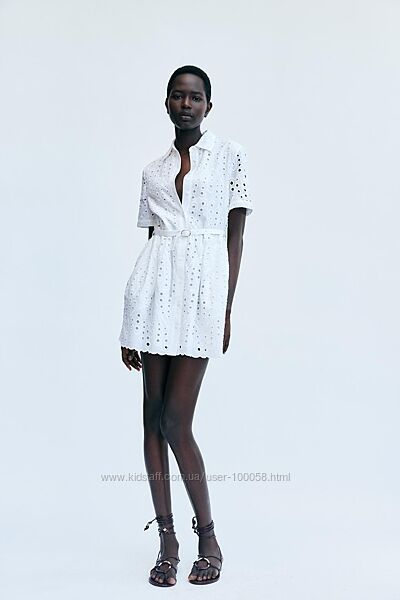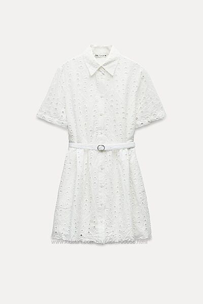 2499 грн -33%1699грн ZARA WOMAN COLLECTION Коротка сукня зі 100%-ї штапельної бавовни з прорізною вишивкою в тон, сорочковим коміром і короткими підгорнутими рукавами. Пасок із тієї ж тканини з металевою пряжкою на поясі. Застібається на ґудзики спереду. В наявності: XS , S , M "ЗОВНІ 100% БАВОВНА ПІДКЛАДКА 100% БАВОВНА"