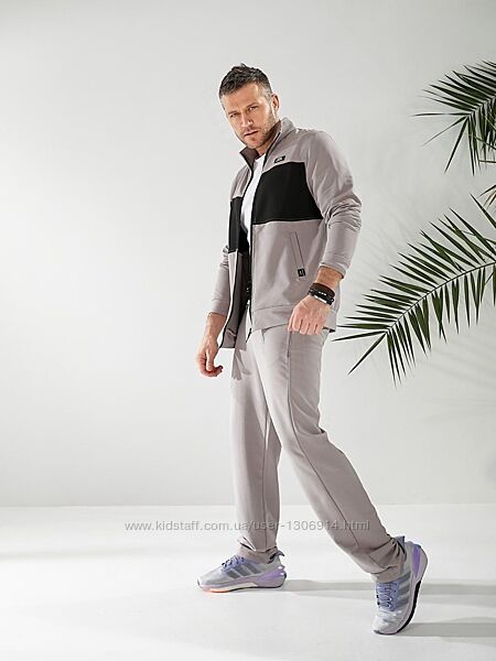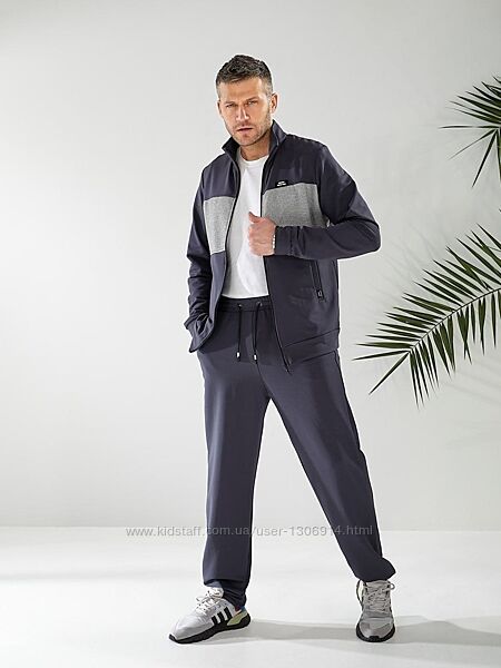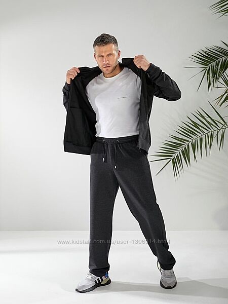 Кофта на блискавці, штани прямі. Костюм виконаний з трикотажу двонитки піньє виробництва Туреччини. На кофті та штанах глибокі зручні кишені. Пояс штанів на кулісці. Розмір одягу на фото 52. Параметри моделі: 100/92/102, зростання моделі 180 см.