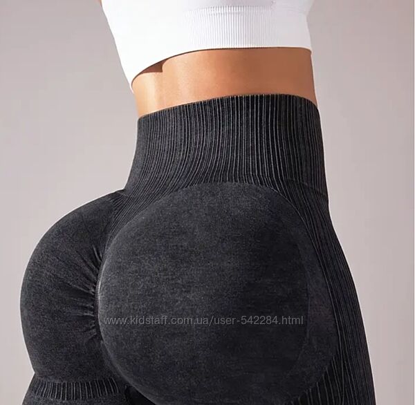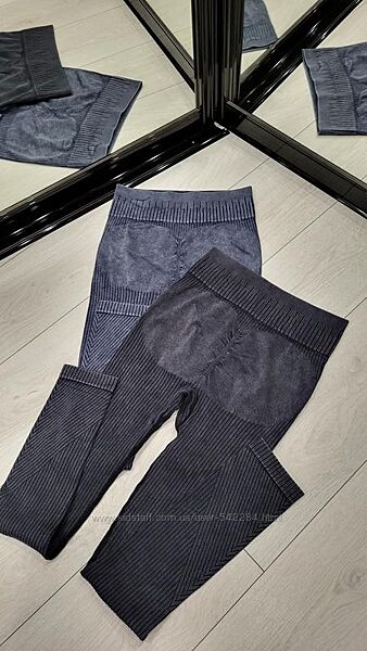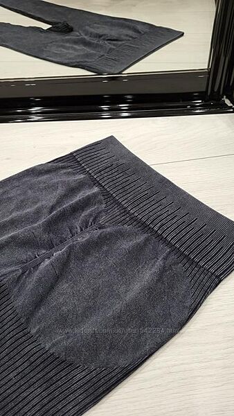 Лосини безшовні щільні в широкий комбінований рубчик з ефектом варки +позаду ефект пуш-ап (Push-up)Відміний широкий пояс 8,5см