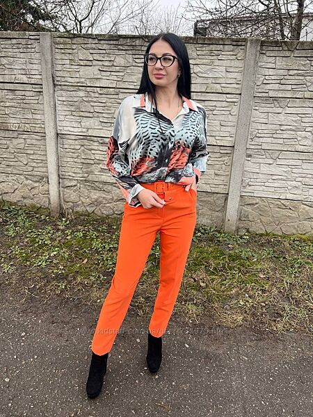 Жіночі помаранчеві штани на літо у розмірах: 42, 44, 48. Фабрична Турція. Пояс йде в комплекті.42 (S) підійде на стегна 90-94 см