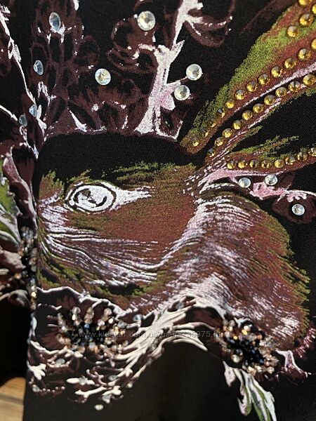 Подробное описание: Жіноча чорна футболка з зайцем на літо 56-58 розмір Туреччина