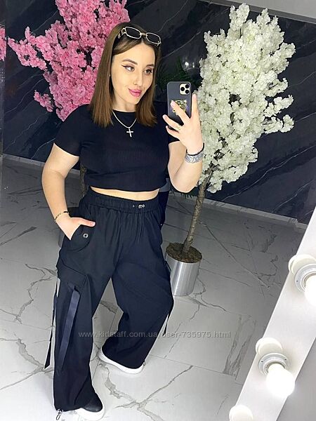 Жіночі тонкі широкі штани на літо на високу дівчину. Довжина:114 см. Розміри:54 (118-122 см), 56 (123-126 см), 58 (127-130 см).