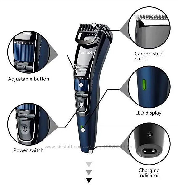 Низький рівень вібрації та шуму, працює тихо, стриже а не висмикує.Торгова марка: Kemei