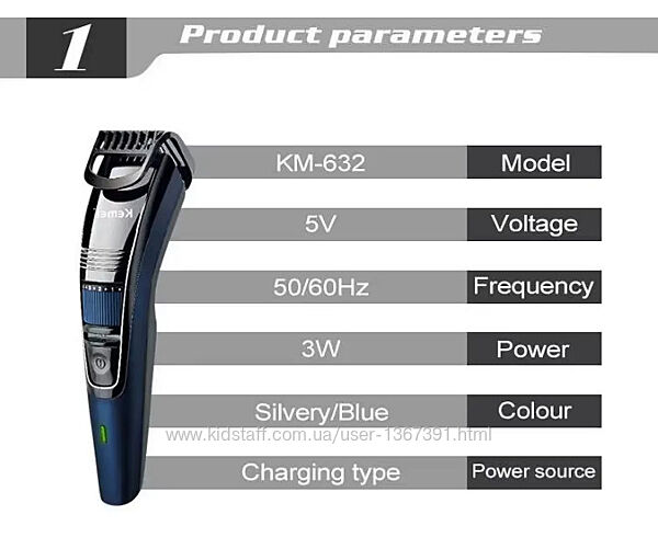 Подробное описание: Машинка для стрижки з акумулятором Низький рівень вібрації/ шуму Kemei 632
